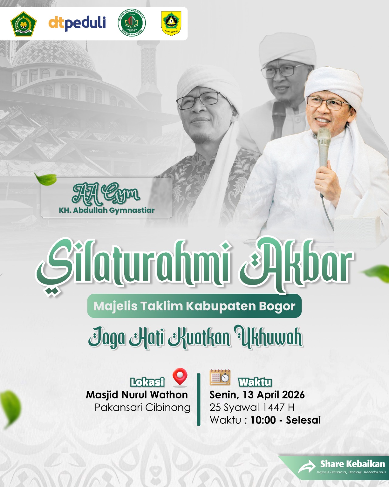 Jejak24jam.com | Bogor, 13 April 2026 – Pokja Majlis Taklim Kantor Kemenag Kabupaten Bogor, menyelenggarakan acara Silaturahim Akbar, yang bertempat di Masjid Nurul Wathan, Pakansari Cibinong. Senin, (13/04/2026), Pukul:12.30 – 13.30 WIB.