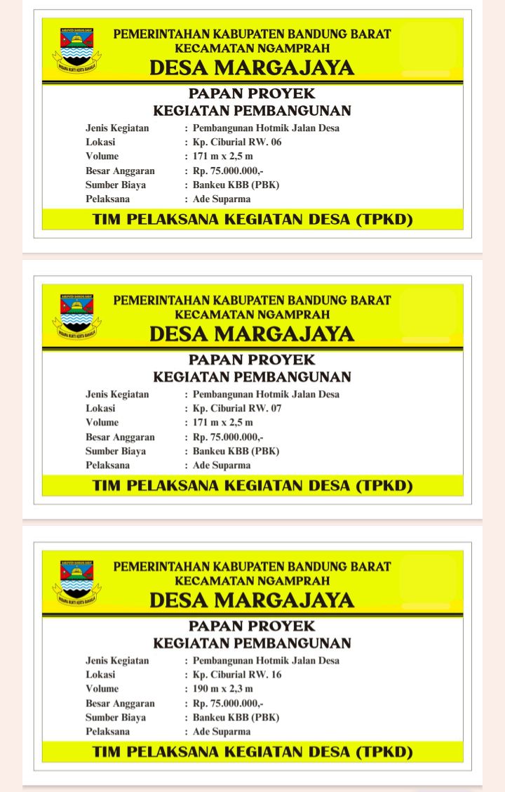 – Kp. Ciburial, Rw 06 : Volume 171 m x 2.5 m, dengan besar anggaran Rp, 75.000.000,- .